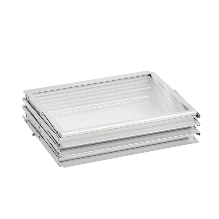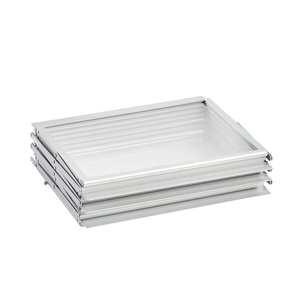 - Espace d’exposition accessible : Conception pliable permettant une accessibilité des deux côtés du présentoir.