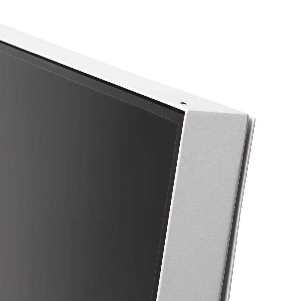 Effectivement, son design élégant sans cadre permet de supprimer toute distraction visuelle inutile autour de l’image. De cette manière, tous les yeux sont rivés sur le message affiché, car l’absence de bordures concentre l’attention exclusivement sur l’écran. Cependant, cette sobriété cache une robustesse exemplaire grâce à une conception en acier thermolaqué de haute qualité.
