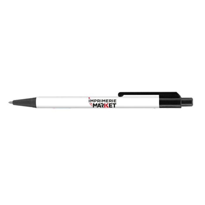 D’abord, il est important de comprendre pourquoi ce stylo personnalisé à bas coût est si avantageux pour votre communication. En effet, ce modèle combine un design pratique et un rapport qualité-prix imbattable, ce qui en fait un choix idéal pour les entreprises souhaitant maîtriser leur budget sans pour autant sacrifier la visibilité de leur marque. Ce stylo noir avec personnalisation couleur se distingue par son corps blanc et sa bordure noire, offrant un contraste esthétique qui mettra en valeur votre logo ou tout autre élément graphique.